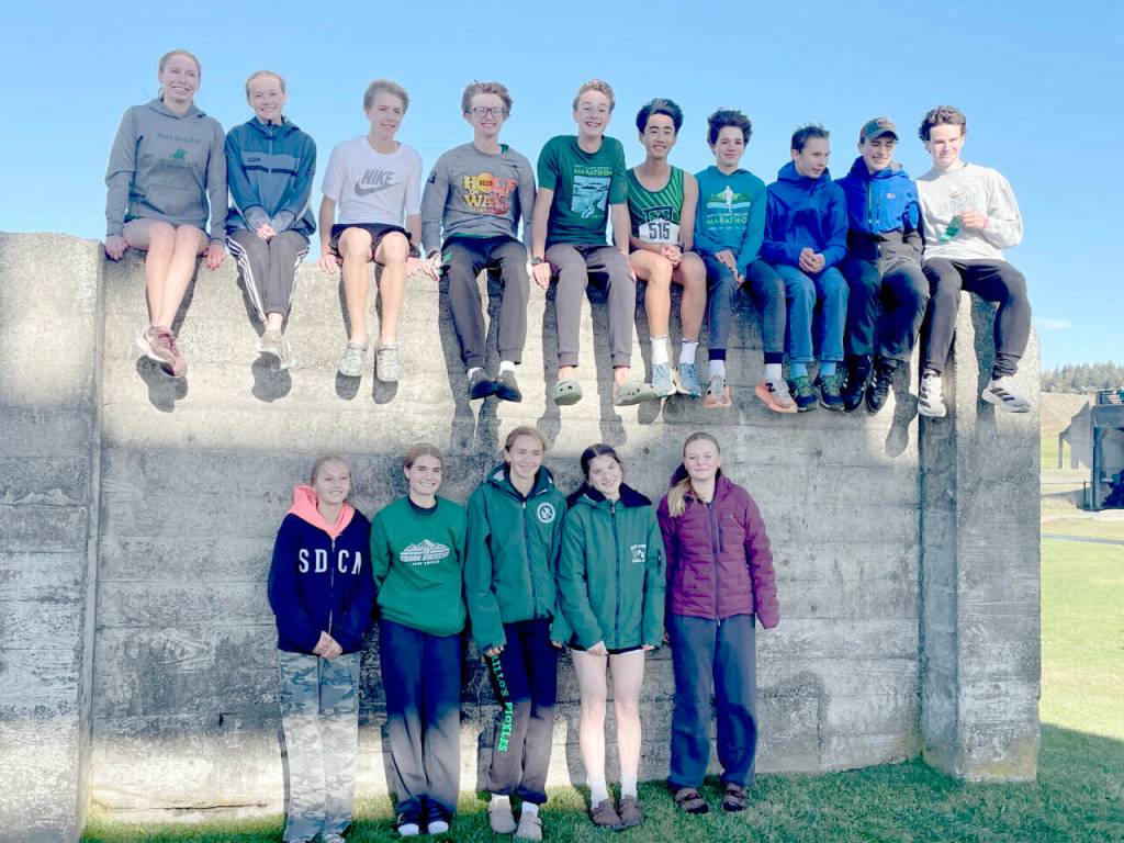 The Port Angeles cross country celebrates during the Westside Classic meet in Tacoma this week. Six members of the team qualified for the state 2A championship, including four boys. (Angie Gooding/Port Angeles Cross Country)