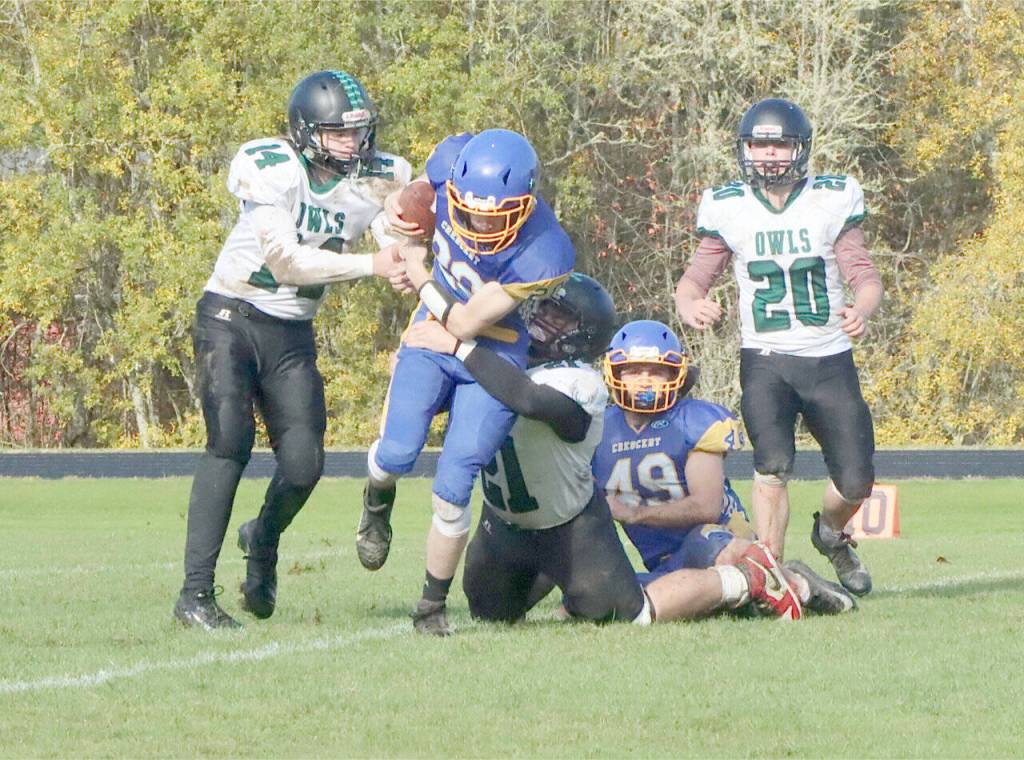 JOYCE — The Crescent Loggers football team completed an undefeated season in 6-man football with a 65-6 thrashing of Mary M. Knight at homecoming Saturday.