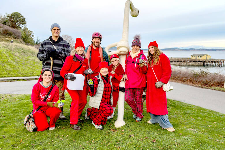 The hunt originated at the Port Townsend Goodwill, where they each had to buy matching clothes, and took them to various venues around Port Townsend culminating at the anchor at Fort Worden State Park. This is the first Christmas they have all been together as a family.