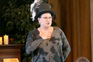 Jeanné Sparks, pictured at a recent Tale Spinners event, will cohost the Out Loud Story Slam at Sequim's Olympic Theatre Arts Center this Friday. (Photo courtesy Out Loud Story Slam)