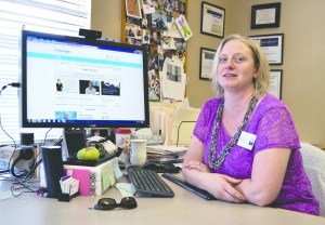 Wendy Sisk displays MyStrength’s portal page on her computer at Peninsula Behavioral Health in Port Angeles. — James Casey/Peninsula Daily News