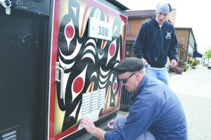SEQUIM –– Artists Bud Turner and Dusty Humphries from the Jamestown S’Klallam tribe last week wrapped a tribal-designed…