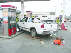 Allegedly stolen items strewn on Sequim streets before chase ends with service station crash