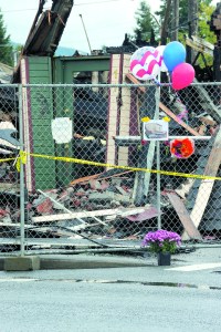 FORKS — Grieving residents are tying remembrance notes to a fence protecting the charred remnants of two historic…
