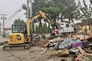 Debris being moved out from property on East Fifth Street