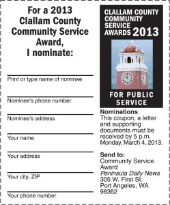 Nominate volunteers for Clallam County Community Service Award