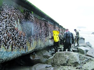 OLYMPIC NATIONAL PARK — Researchers took samples of marine life from a 64-foot concrete dock that swept ashore…