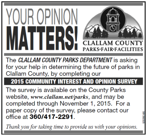 CLALLAM COUNTY PARKS DEPARTMENT is asking the public to participate in a short “community interest and opinion survey.”…