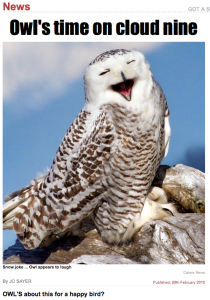 From the Internet, by Peninsula Daily News staf “THIS MAJESTIC SNOWY owl looks like it’s cracking a broad…