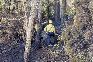 Downed power line sparks brush fire near Brinnon