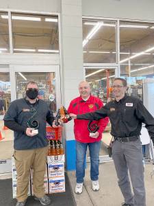 Toasting each other with Bedford’s Sodas are, from left, Ryan Gedlund of Swain’s General Store, Ed Bedford, creator…