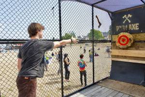 Dayton Brown, from Sammamish, aims for the bull’s eye in the PNWAXE cage during THING music and arts…