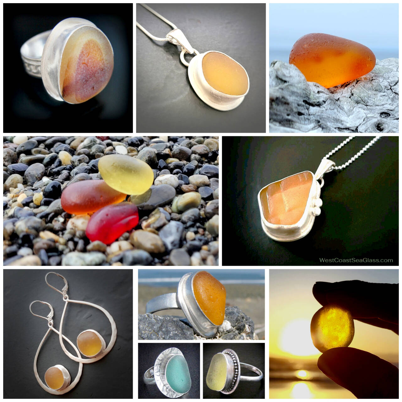 Beuke, a local artist, creates fine silver art jewelry that features sea glass pieces of every color.