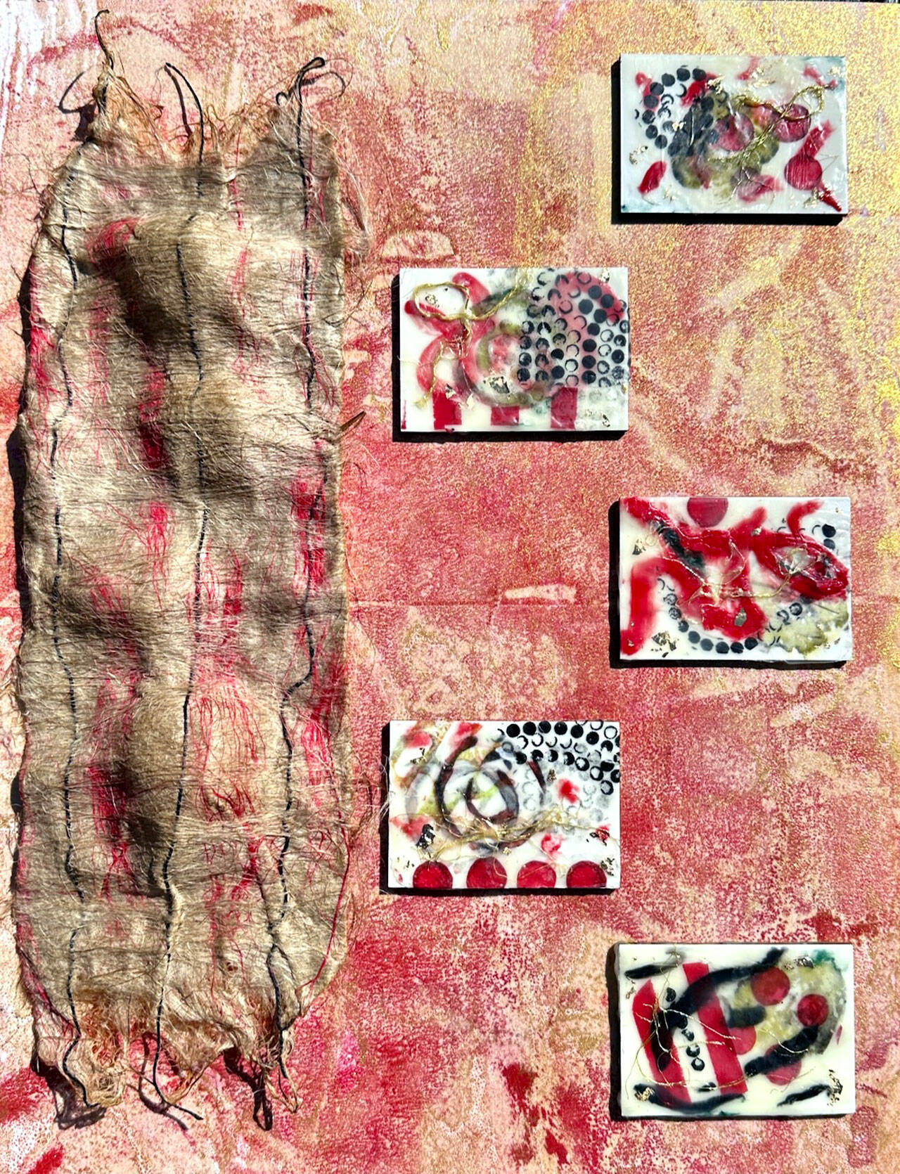 LeRouge works with mixed media to create artwork using fiber, needle arts, encaustic and multiple forms of surface design.