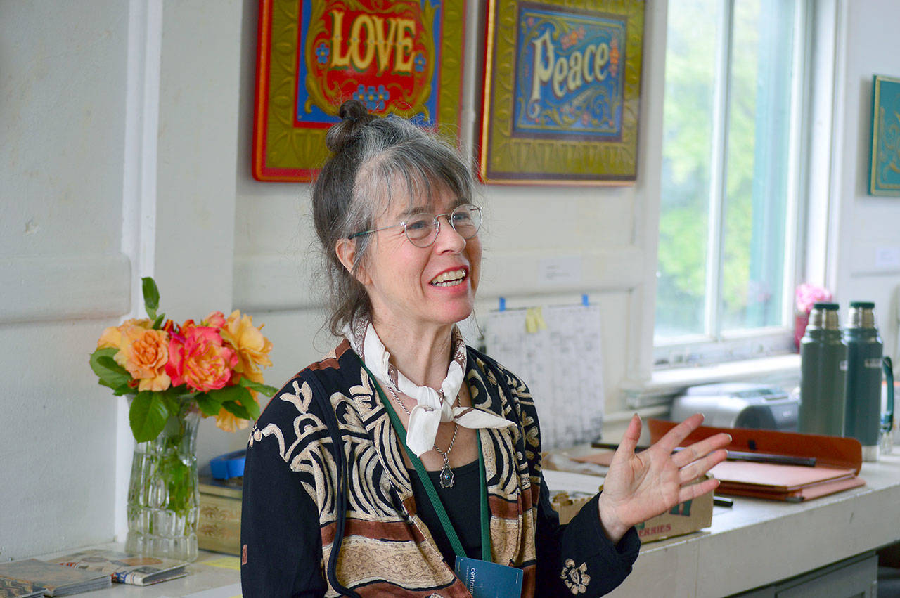 On her open-studio day at Fort Worden State Park on May 26, the painter displayed the 9-foot-tall “Gentle Revolution,” plus a carnival of signs and sculptures.