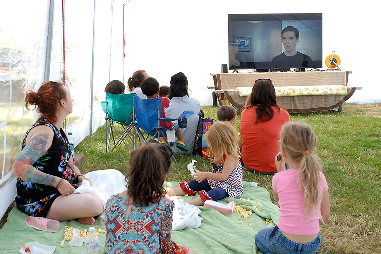 Youngsters and adults watch a showing of the movie “Peter Rabbit” under a tent set up at Erickson Playfield in Port Angeles as part of Saturday’s inaugural Day of Play, a conglomeration of events and activities at a variety of locations around the city in honor of National Parks and Recreation Month. Numerous groups and agencies hosted their respective activities under the umbrella of the Port Angeles Parks and Recreation Department.