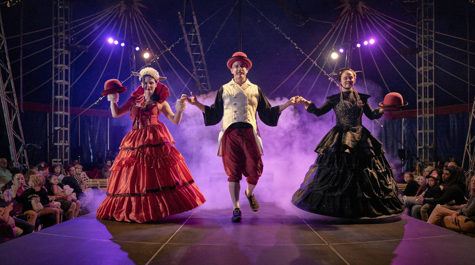 Flynn Creek Circus, founded in 2002, is a touring circus-theater company known for blending jaw-dropping acrobatics with storytelling and theatrical artistry. Their performances take place inside a striking red-and-white, hand-crafted European big top tent, creating an intimate, transportive environment.