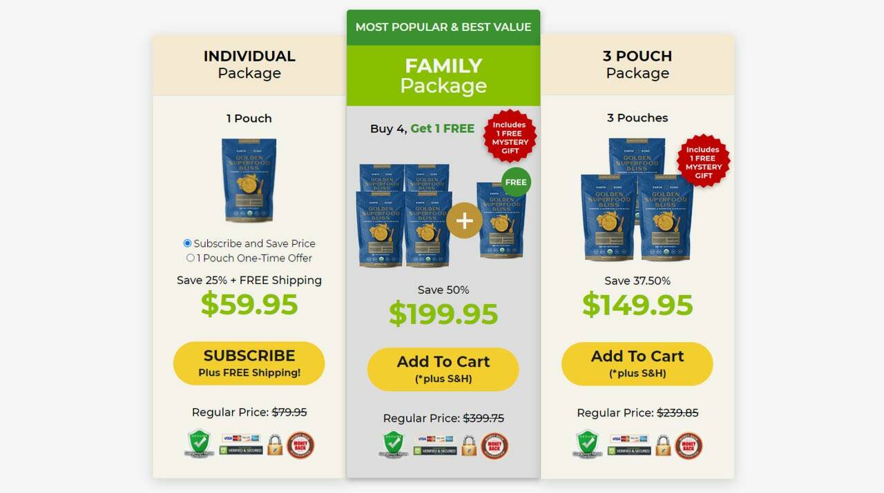 Consumers who want to start using Golden Superfood Bliss can order it from the official website since multiple packages are available. Choose from:
