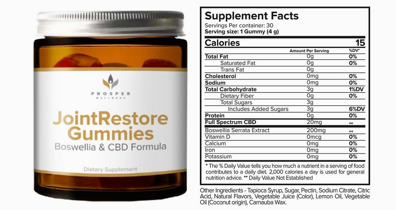 JointRestore Gummies focuses on inflammations that cause injury and pain. JointRestore gummies are a product from Prosper Wellness Company which specializes in manufacturing various dietary supplements. According to the maker, JointRestore Gummies are made from high-quality ingredients and two main ingredients for supporting joint health.