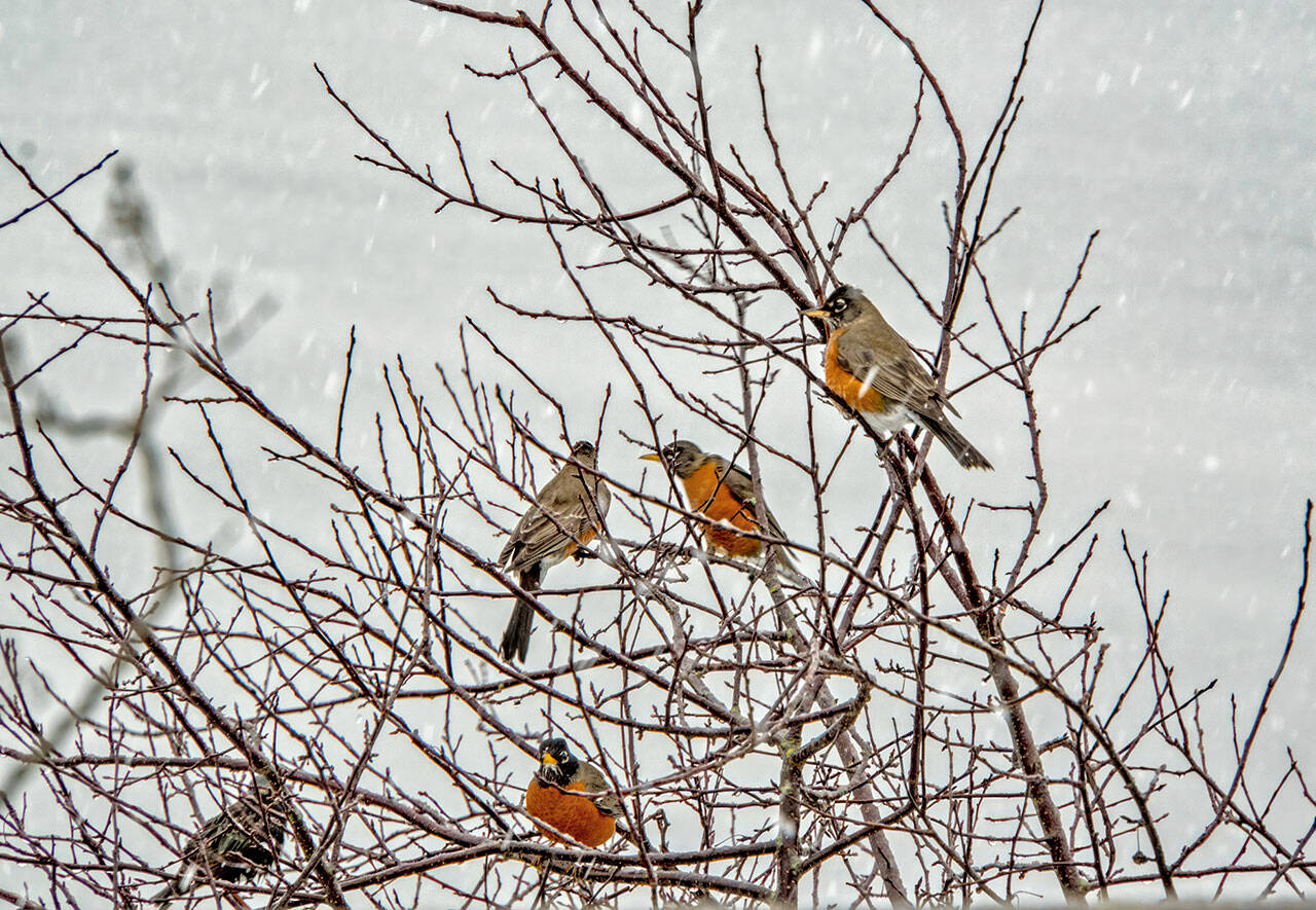 Snow returned to the North Olympic Peninsula on Wednesday, if only briefly, before being replaced by the rain that’s expected to remain through the rest of the week.