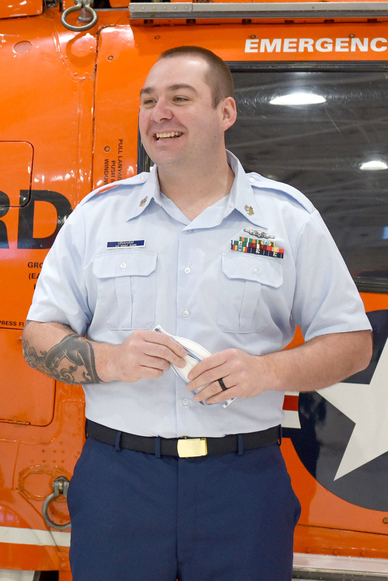 According to a press release, Vogt selected Graham was selected for meritorious advancement based on his volunteerism within the local community and his devotion to the coast guard mission.