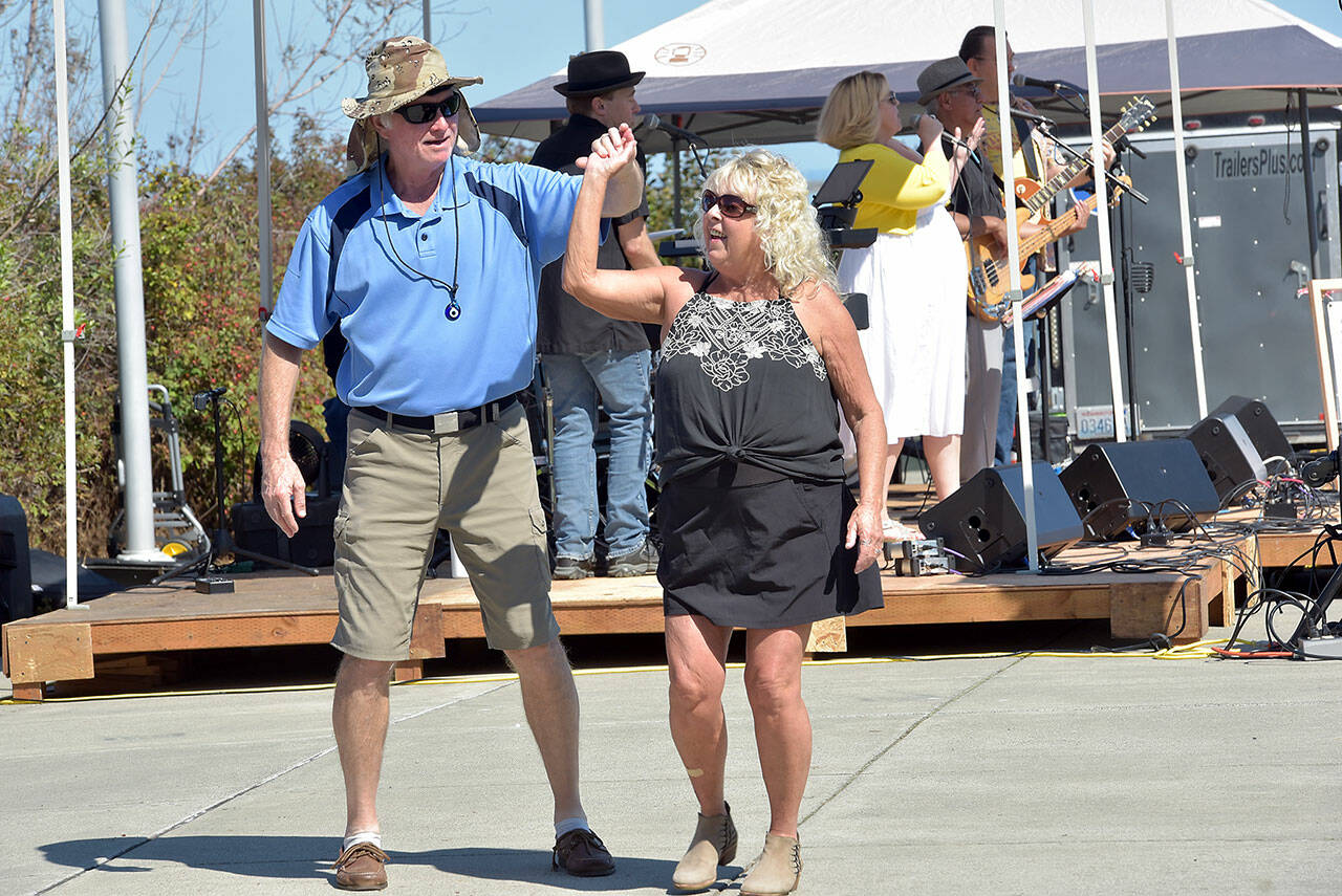 Nor’Wester Rotary member Chris Szczepczynski turns hot dogs for sale at Jammin’ in the Park on Saturday at Pebble Beach Park on the Port Angeles waterfront.