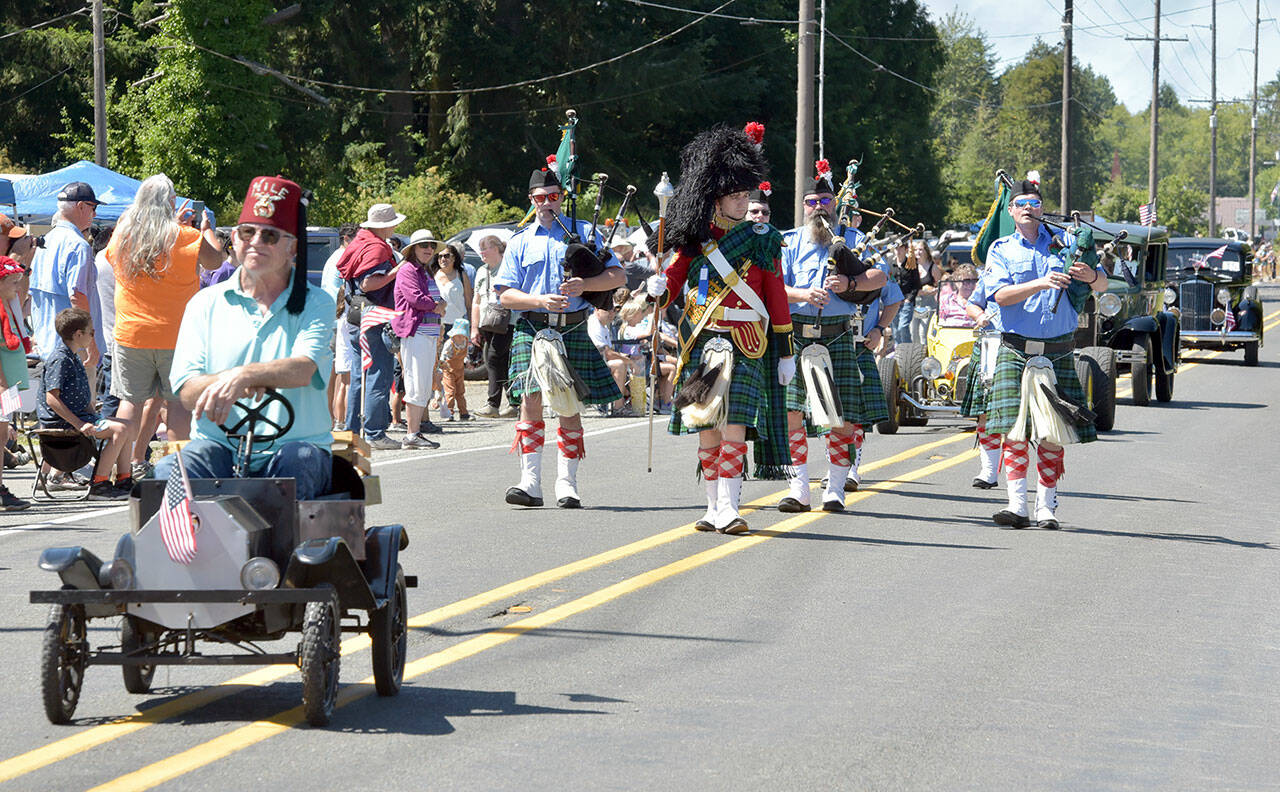 Stephanie Fuscher receives a ceremonial key to the city from Joyce Daze festival chairman John Kent, who took on the honor of being Joyce “mayor” for the day.