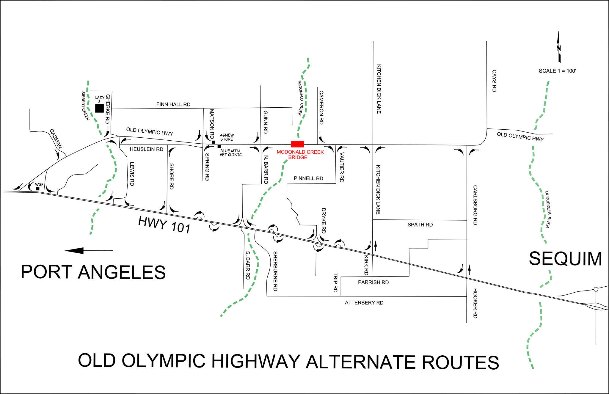 Travelers coming from Sequim will be advised to drive west on Old Olympic Highway to Kitchen-Dick Road and to the highway and back up Barr Road.