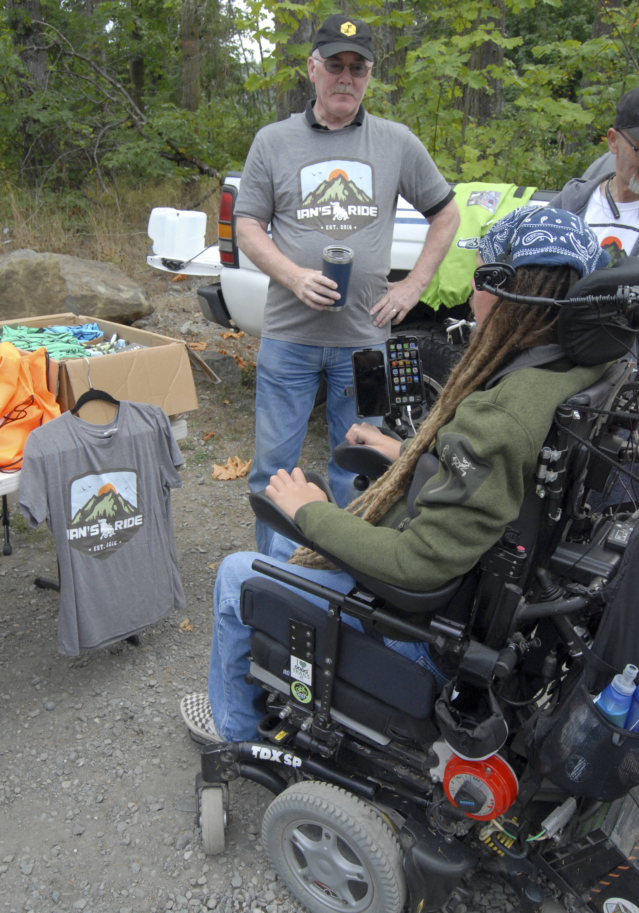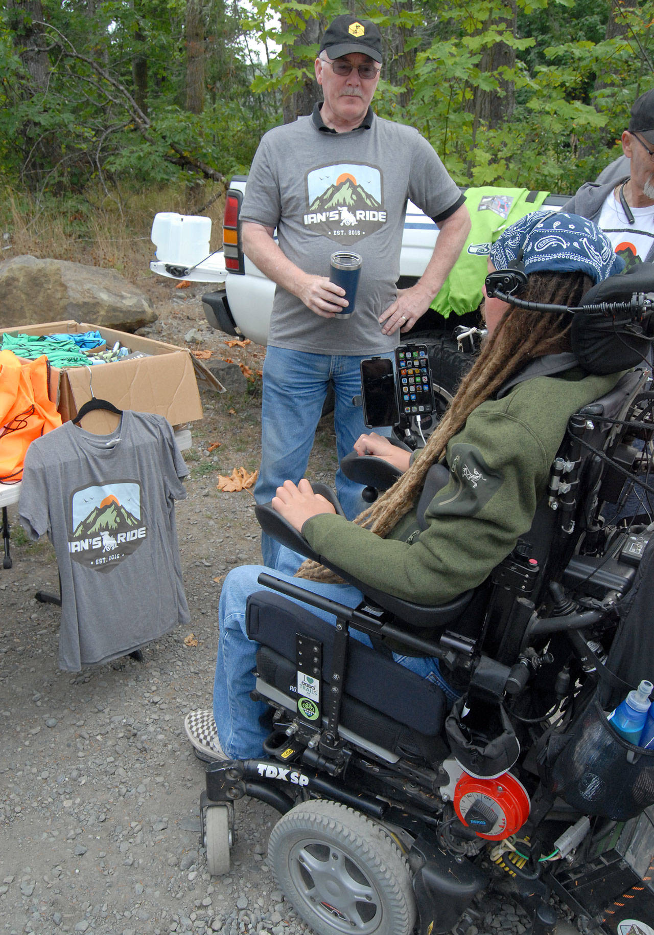 Mackay’s friend, retired Port Angeles police chief Terry Gallagher, was on support crew duty on Saturday. He said his experiences with his disabled sister-in-law led him to Mackay’s exuberance and desire to live life to the fullest from his wheelchair.