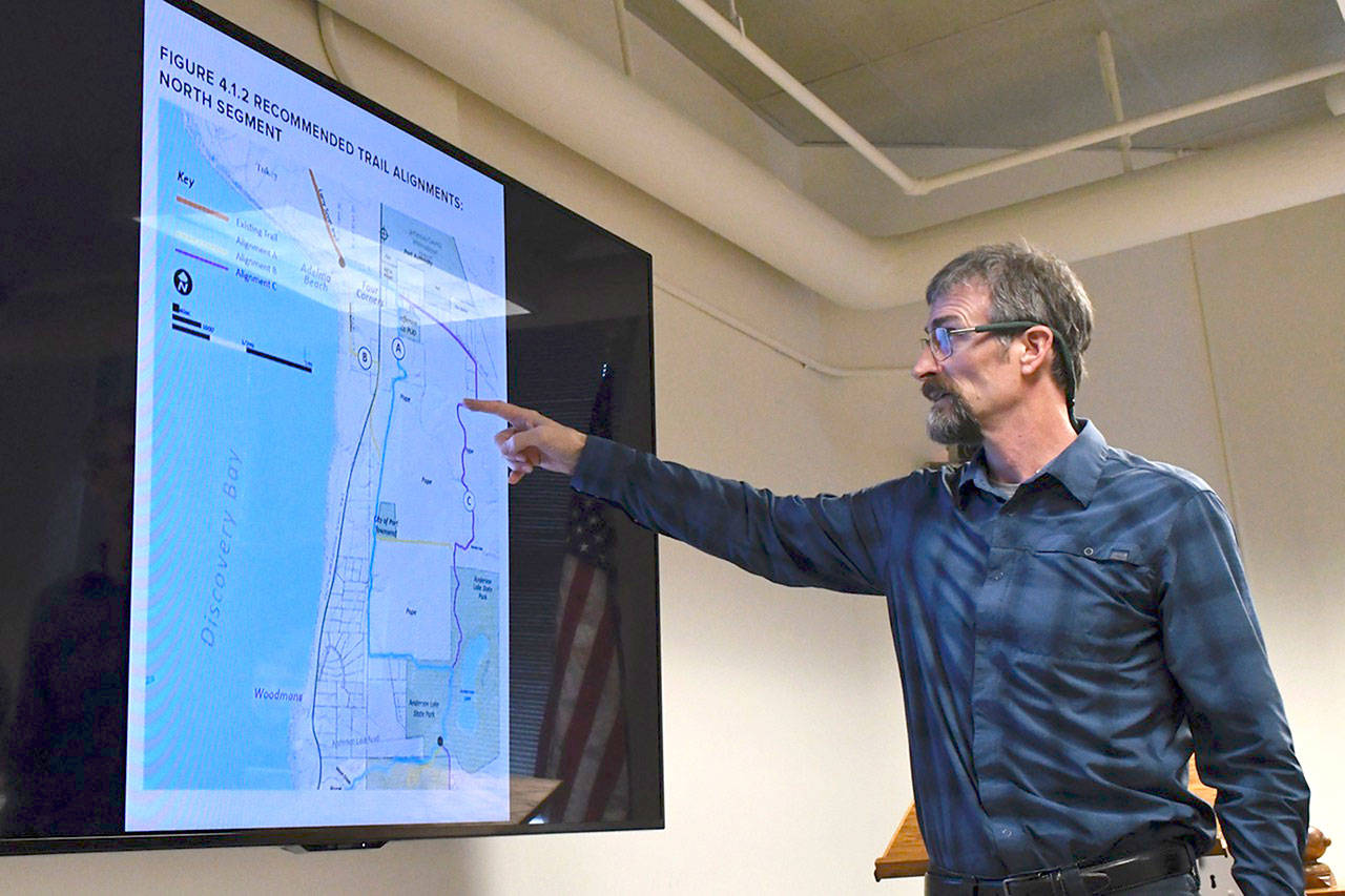 PORT TOWNSEND — Jefferson County commissioners heard Monday of possible routes for the extension of the Olympic Discovery Trail between the recently constructed segment along South Discovery Bay and the Larry Scott Trail at Four Corners.