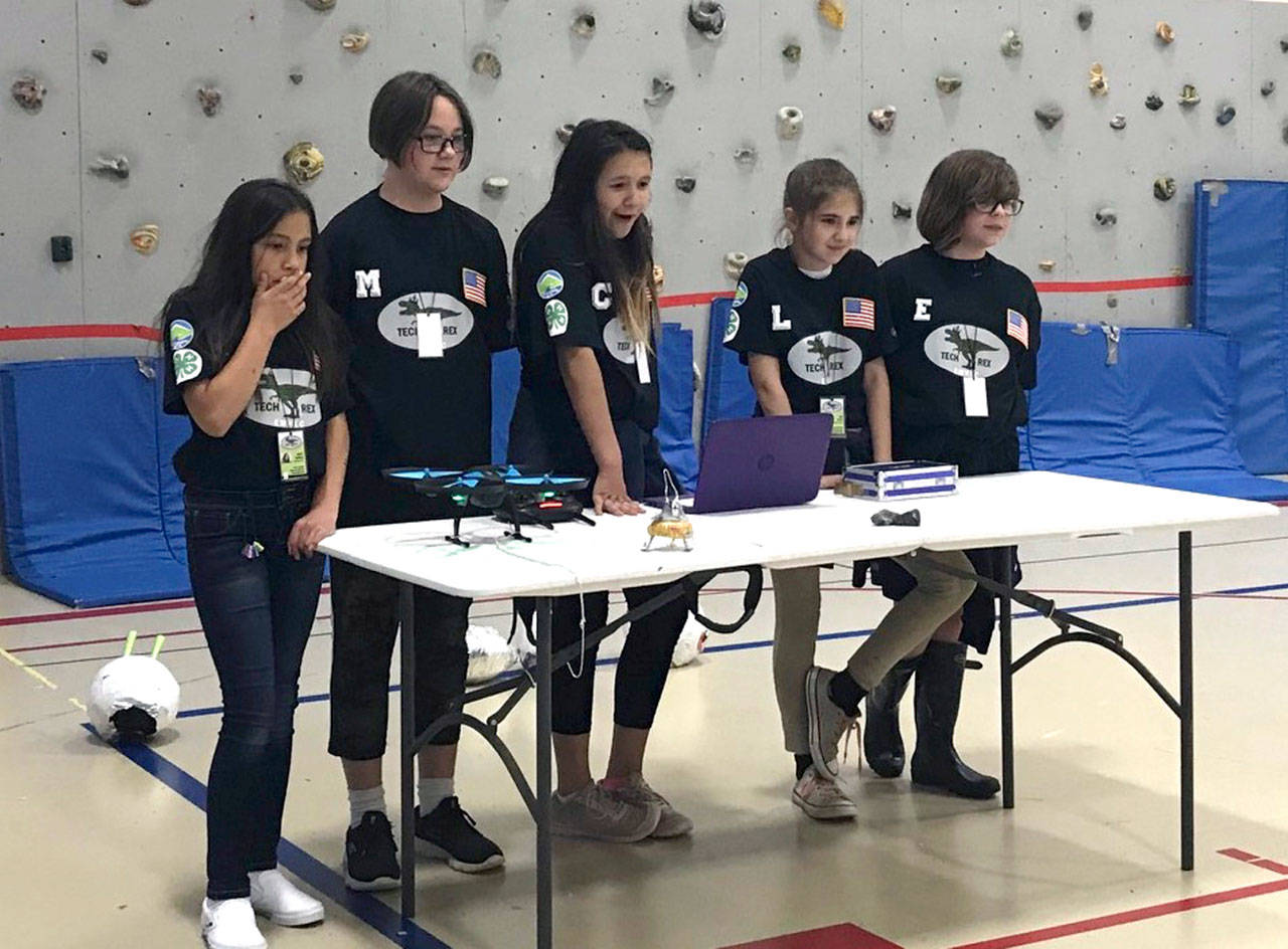 Alysia Pearcy, a Clallam County 4-H leader who is the coach and flight director for TechRex, said her five-member all-girls team met for about three hours once per week for two months in Port Angeles to work toward solving the puzzle.