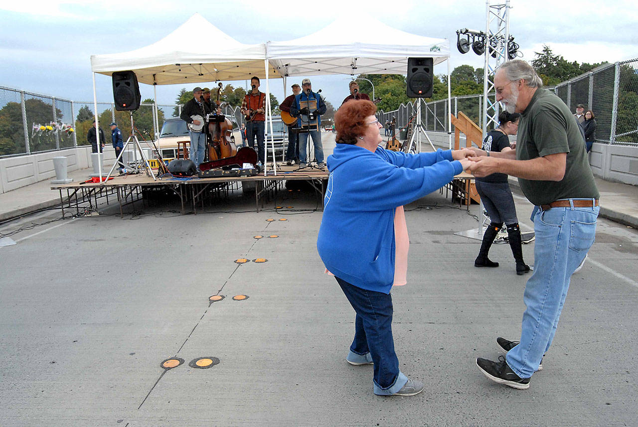 PORT ANGELES — Port Angeles city officials hosted a community gathering and a concert on the Eighth Street bridge over Valley Creek to celebrate the installation of suicide barriers.