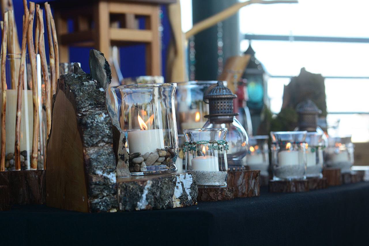 Candles shine during the overdose awareness event. (Jesse Major/Peninsula Daily News)