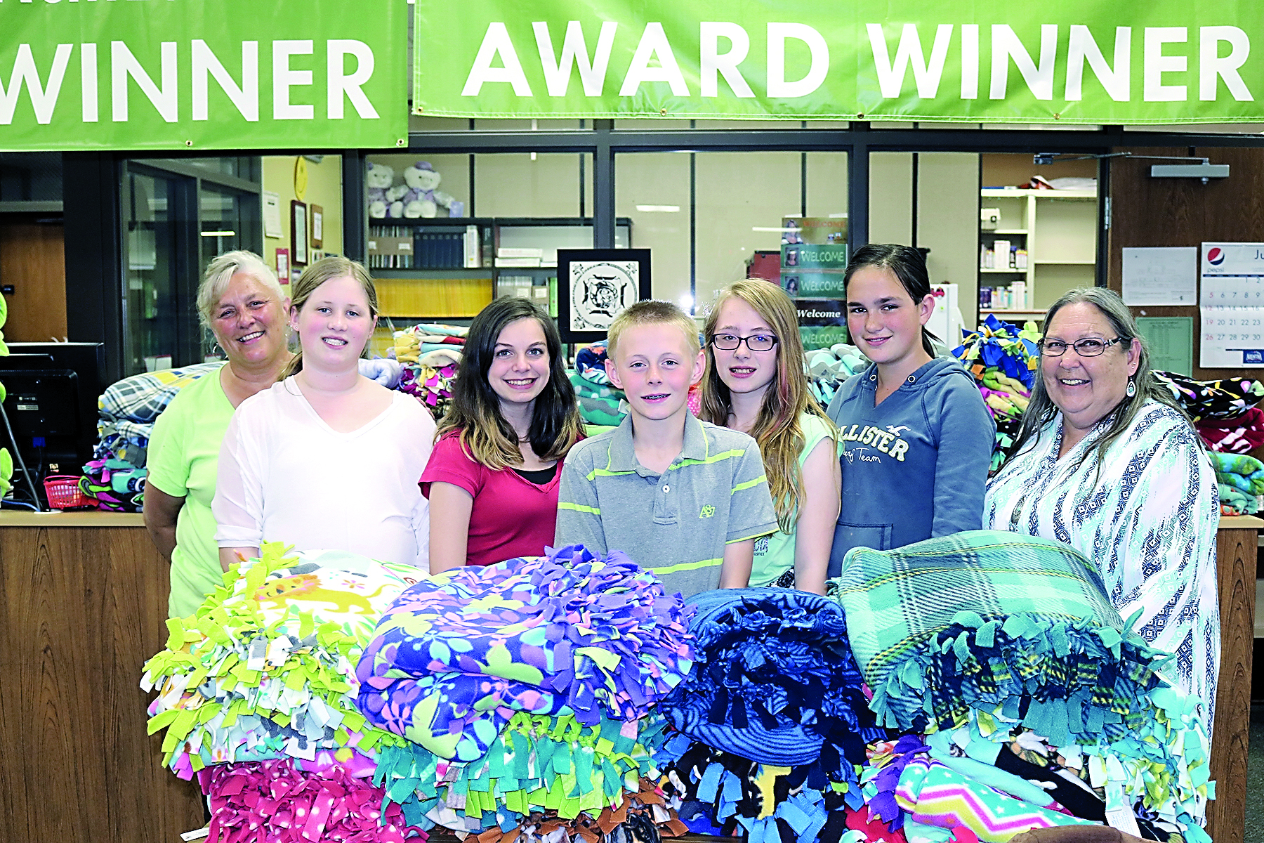 The blankets, made under the guidance of adviser Evelyn Ellsworth and volunteer Carol Hughes, will be delivered to Seattle Children’s Hospital by Pat Gracz, Project Linus coordinator for the Peninsula chapter.