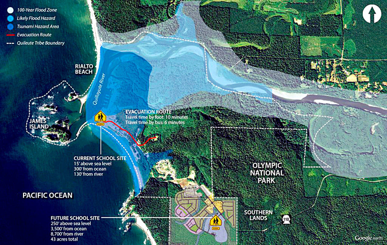 The school and the rest of the village at La Push are in a tsunami hazard zone that will be leveled when the Cascadia subduction zone earthquake sends 40-foot wave crashing into shore within 10 to 15 minutes, experts say.