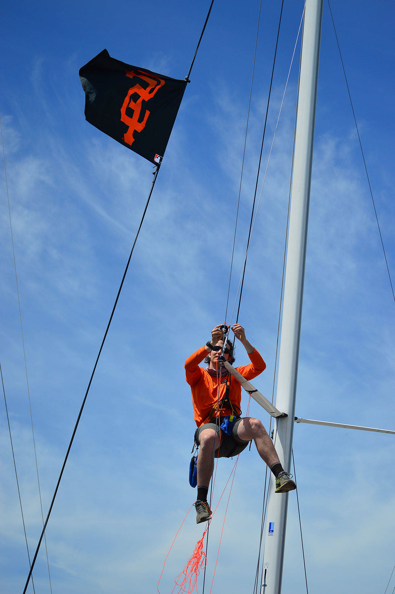 Next door to Sail Like a Girl at Point Hudson, another crew was readying itself: Team Shut Up and Drive. The eight members, made up of men and women from France, Seattle, Canada and Albuquerque, N.M., had Satchel Douglas up tuning the rig. That means “adjusting the tension on these shrouds,” he said, “to be faster. Everything we do is to be faster,” on this 33-foot Beneteau Figaro 2.