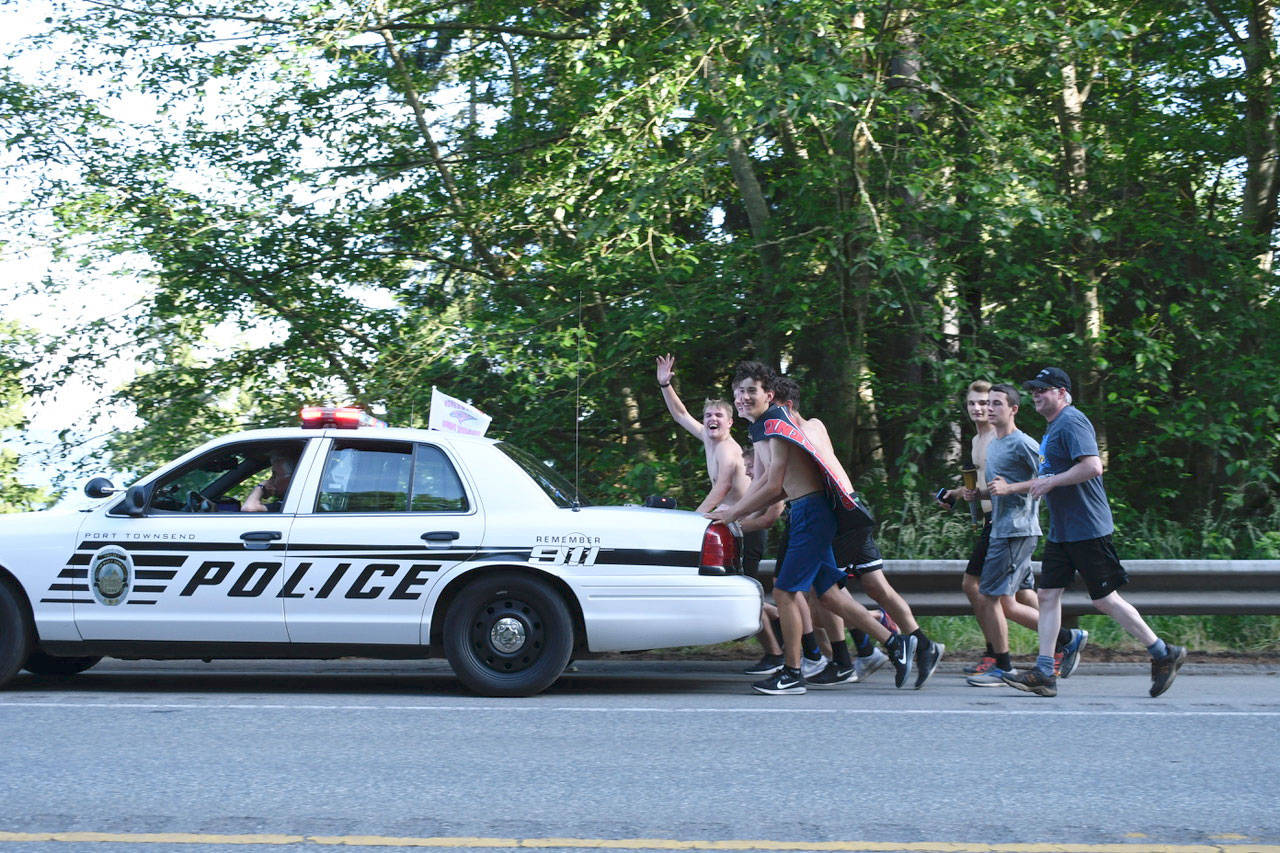 Members of the Jefferson County Sheriff’s Office, Port Townsend Police Department, Port Townsend High School student athletes and Special Olympic athletes received the torch from representatives of the Clallam County Sheriff’s office and Special Olympians and carried it from the intersection of state Highway 104 and U.S. Highway 101 at 3:30 p.m.