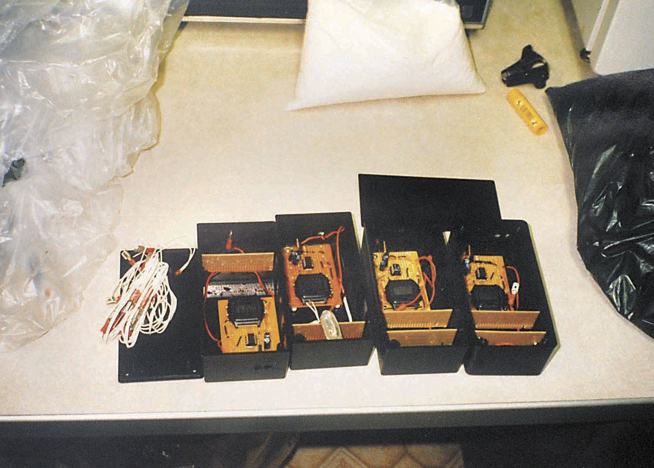 The explosive components for what prosecutors said could have been suitcase bombs — including four timers — were hidden in the trunk of Ressam’s rented luxury Chrysler.