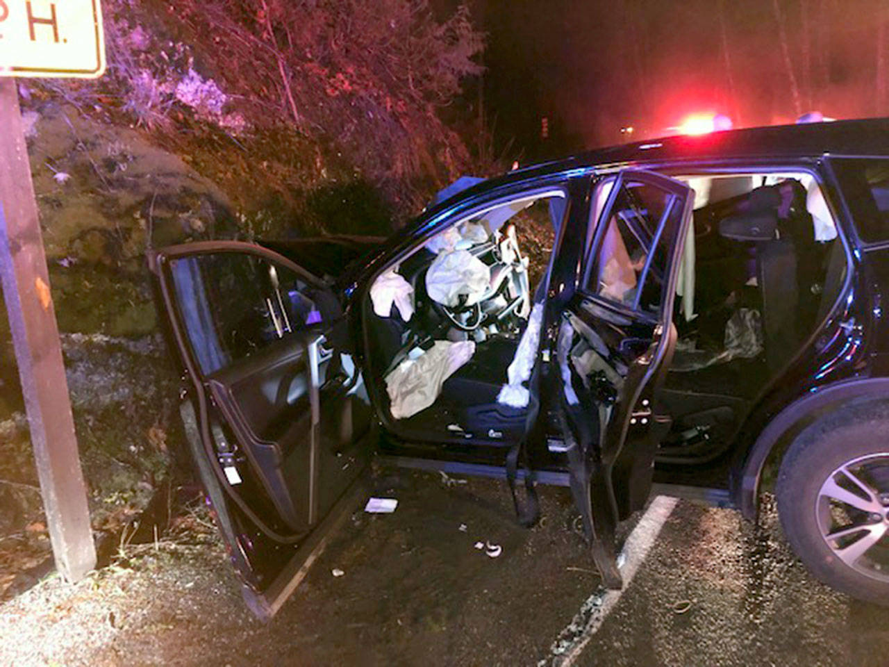 The State Patrol said that Tran failed to negotiate the Highway 101 curve to the left near its intersection with Olympic Hot Springs Road and drove off to the right and hit a rock embankment.