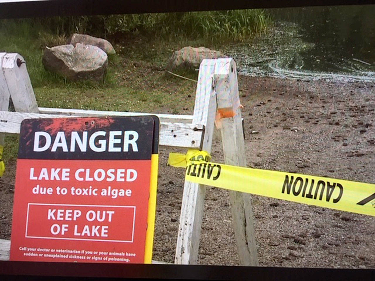 The new signs, which he said have recently have been posted around the lake, read: “Danger. Toxic. Lake Closed. Stay Out of Water. No Pets in Lake. Exposure to water in this lake will cause serious injury or death for people and animals.”