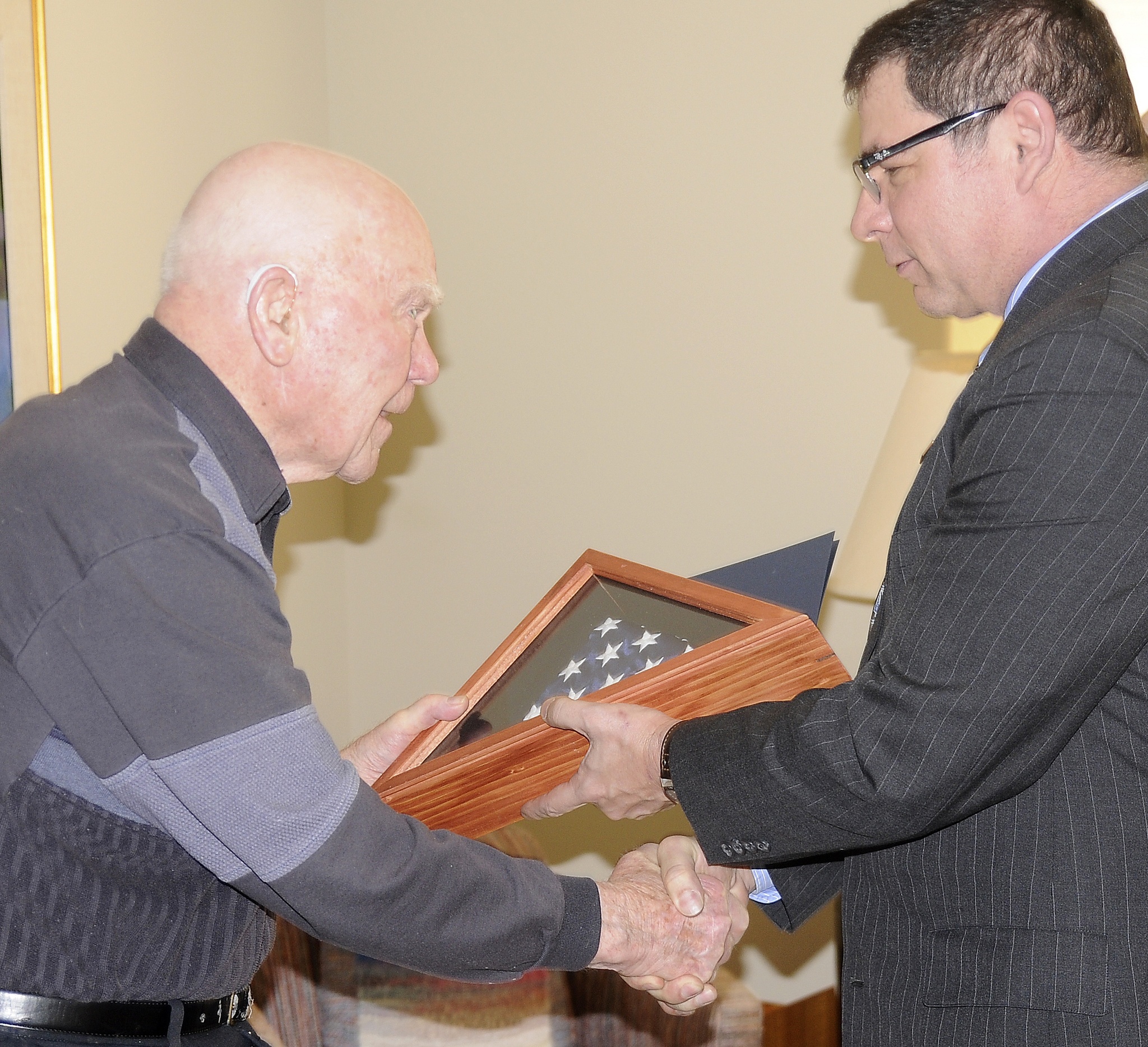 Roy Carter and Bob Rains each received framed American flags that have been flown over the USS Arizona Memorial.