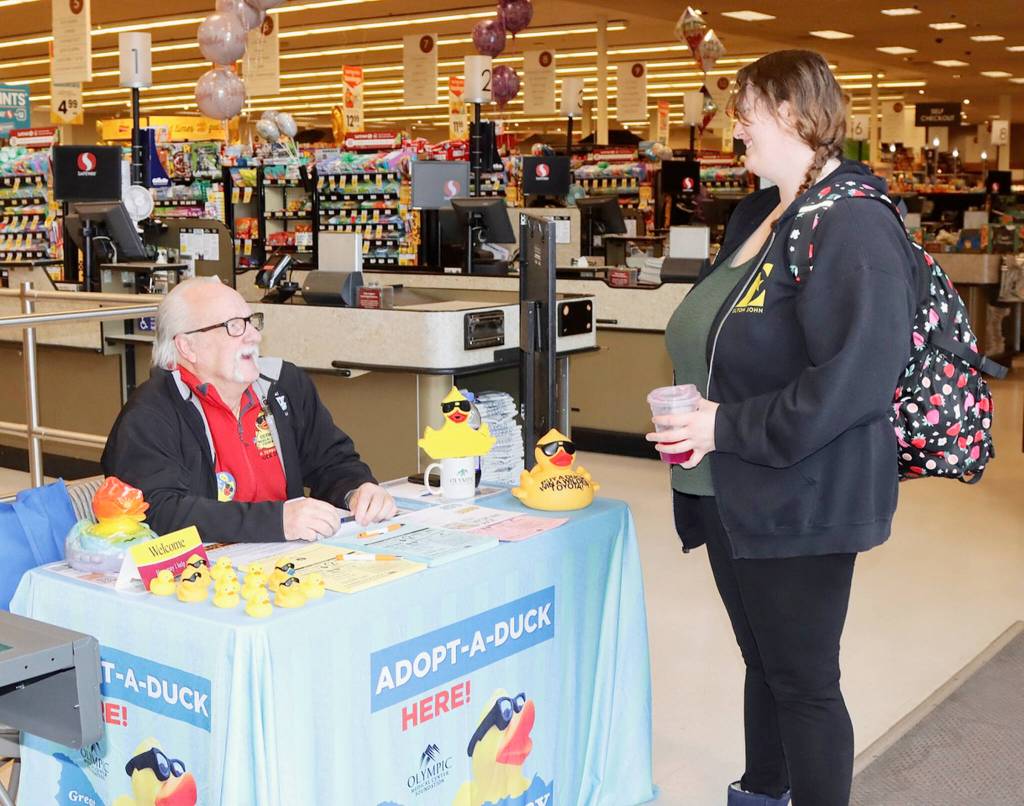 Duck Derby sales Larry Strohm, a volunteer for the Olympic Medical Center Foundation, explains the Great Olympic Peninsula Duck Derby to Kati Carlson-Underhill of Port Angeles at the… 1 MIN READ