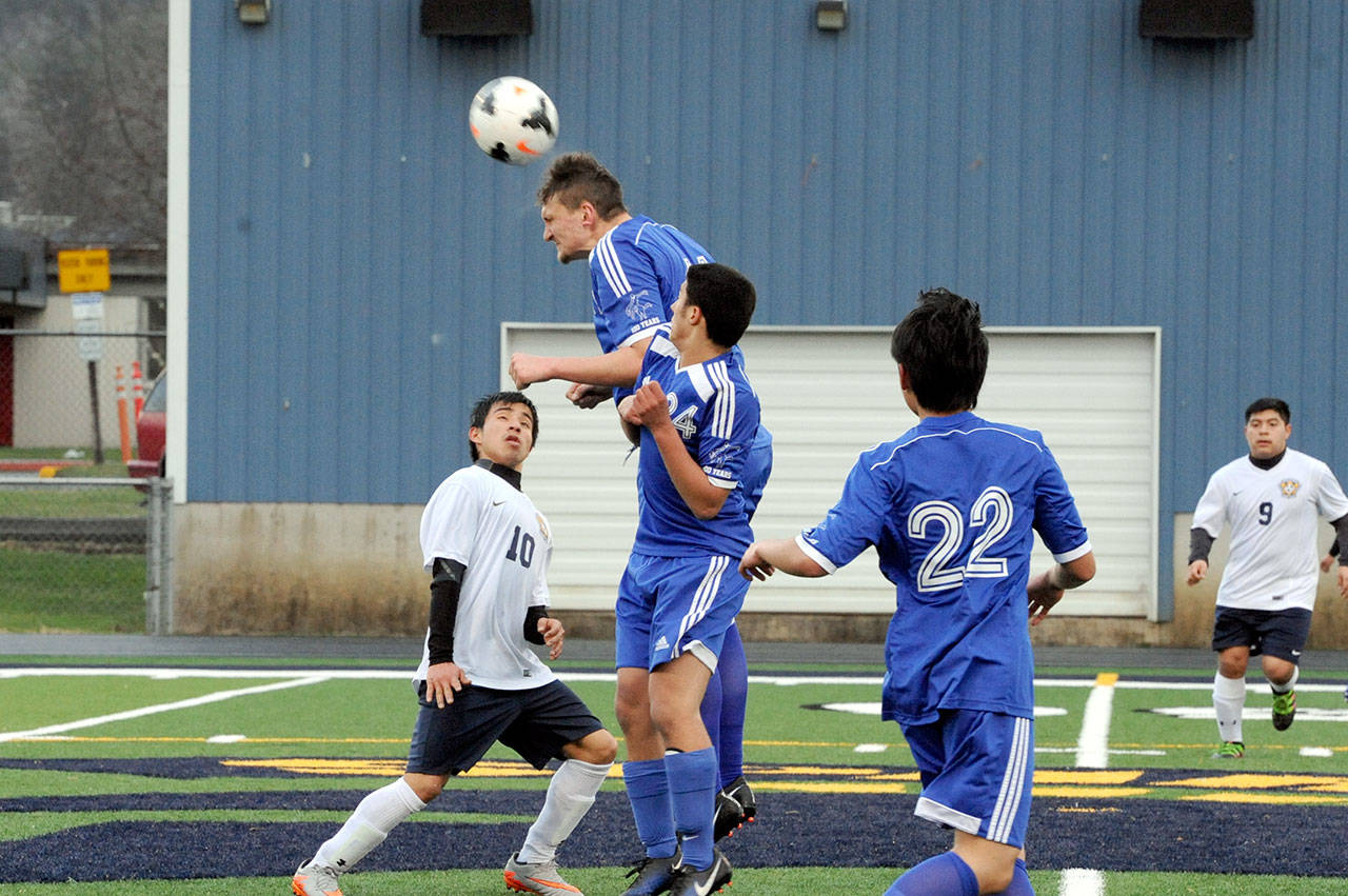 Port Angeles midfielder Ben Schneider hit the post in the first overtime period only to have the ball bounce wide of the goal and off the post.