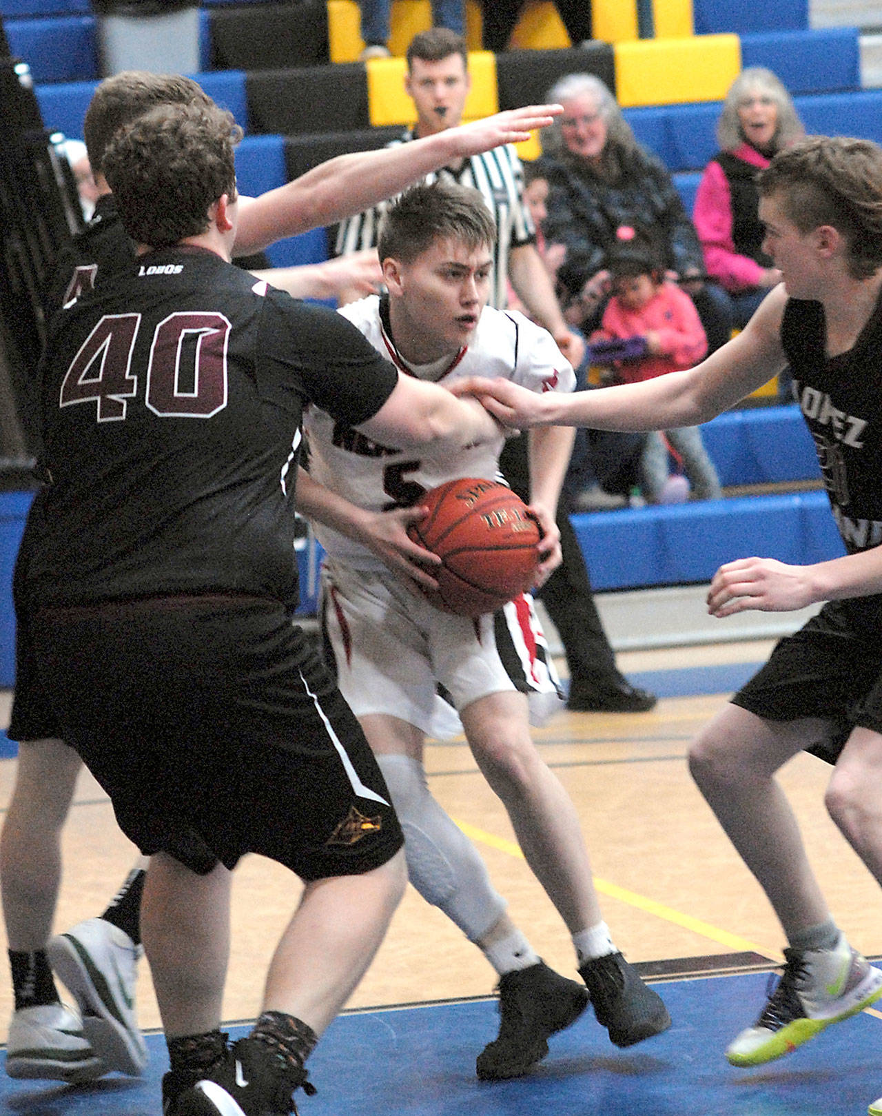 Neah Bay’s Darrin Horejsi sank seven of his nine points in the third quarter as the Red Devils surged ahead to open the second half.