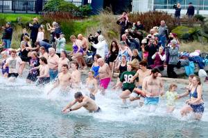 About 100 people dipped three times into the water during the 38th annual Polar Bear Dip on Thursday…