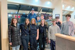 Santa, played by Beau Gibson, greets the children and their parents on the shores of Lake Crescent after…