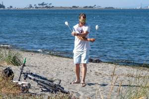 James Slayton of Port Ludlow rode his bicycle to the beach at Point Hudson in Port Townsend to…