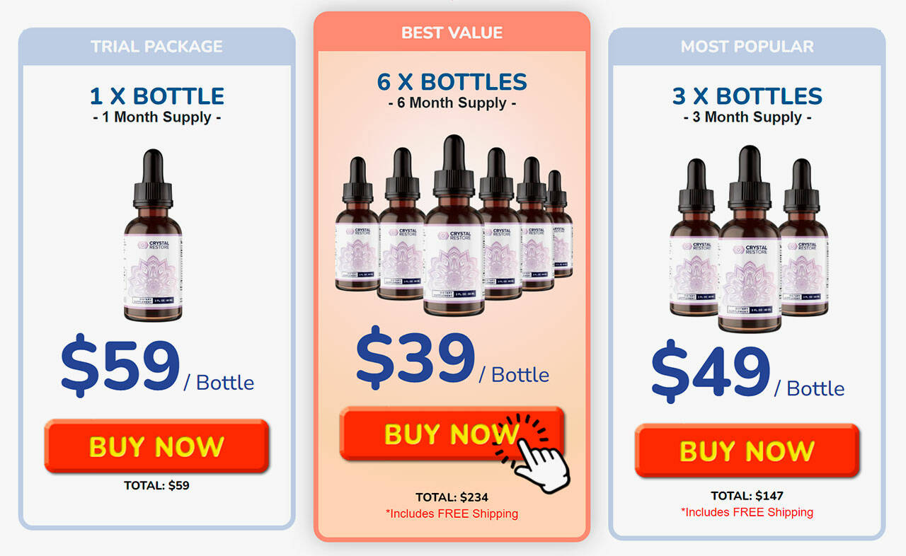 A. The procedure for purchasing Crystal Restore is quite simple. Visit the official website and click the “Claim Your Discounted Crystal Restore” button to place your order.