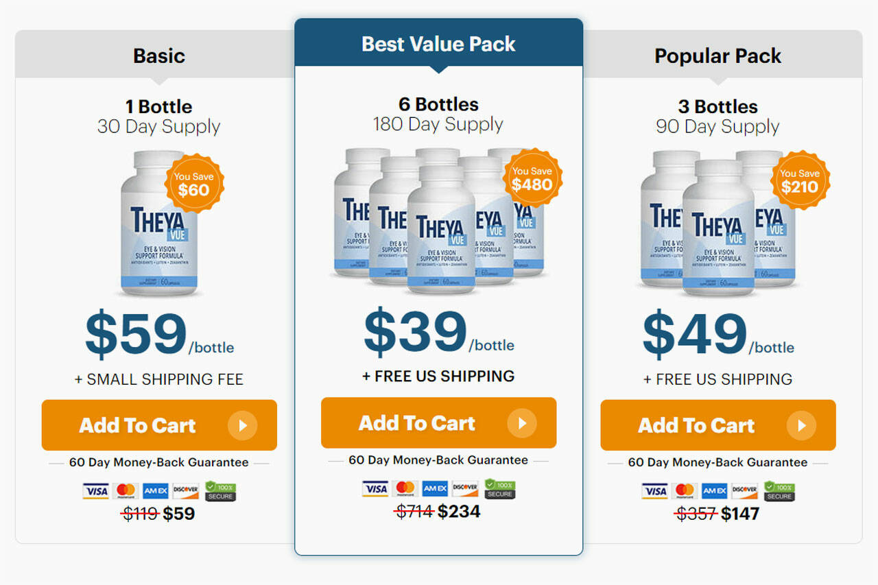 TheyaVue can only be purchased through its official website, ensuring that customers get the genuine product directly from the manufacturer. This direct-to-consumer model guarantees the supplement’s quality and authenticity and allows for better pricing and customer support.